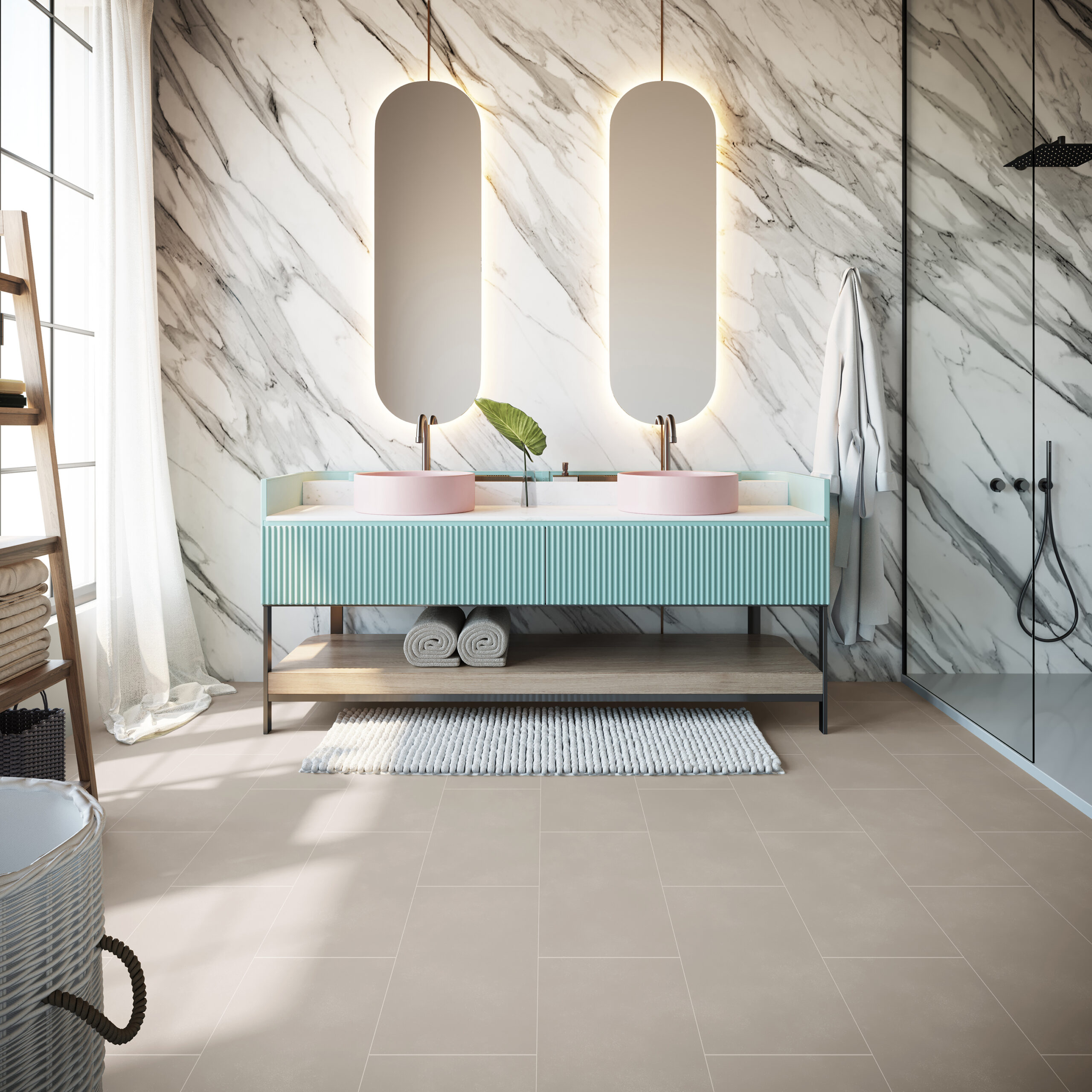 Stone design luxury vinyl tiles for a full blown exposed concrete look. A modern plain tile design in a light or dark tone.